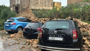 قوة الرياح تتسبب في انهيار سور على سيارات في سلا
