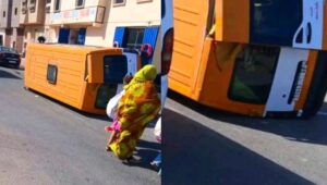 انقلاب حافلة للنقل المدرسي بالعيون